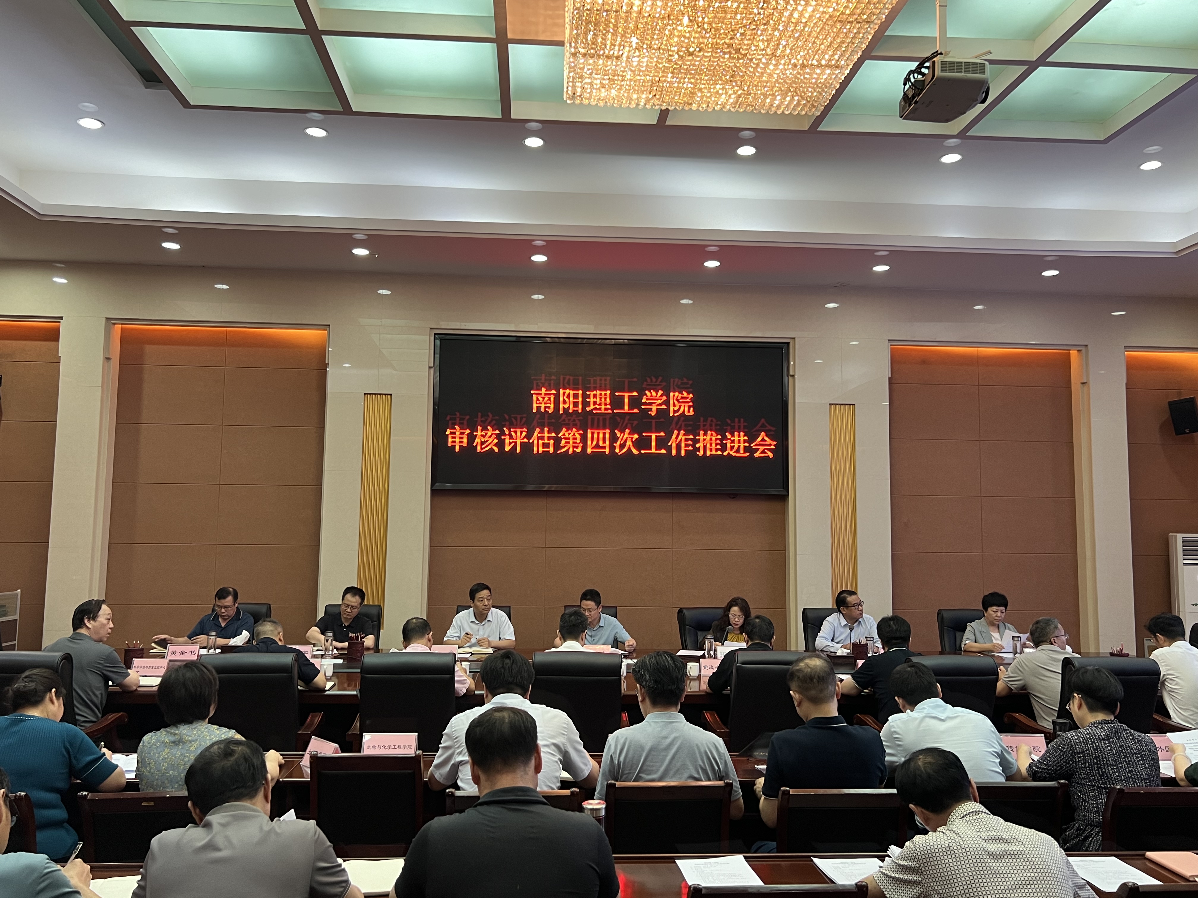 本网讯(特约记者/唐鹏)7月3日下午,我校本科教育教学审核评估评建第四次工作推进会在会议中心召开,校长郝好山出席并讲话,校领导张爱红、董豪、蔡广宇、高芳放、黄金书出席会议,副校长葛晨光主持会议,审核评估评建工作领导小组全体成员和各职能部门负责人参加会议。